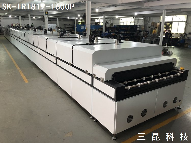 大型IR隧道爐玻璃絲印烘干固化生產線加熱烘烤線SK-IR1812-1600P