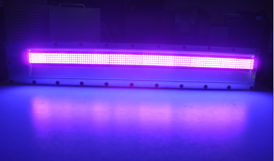 傳統(tǒng)的汞燈方式點光源固化機在增加照射通道時,通道的增加會造成單個照射通道的輸出能量減少。而采用uvled固化燈的照射,各個照射頭獨立發(fā)光,照射能量不受通道增加的影響,始終保持在最大值,因其超強集中的光照度,與汞燈相比,UV LED 縮短了作業(yè)的照射時間,提高了生產(chǎn)效率。