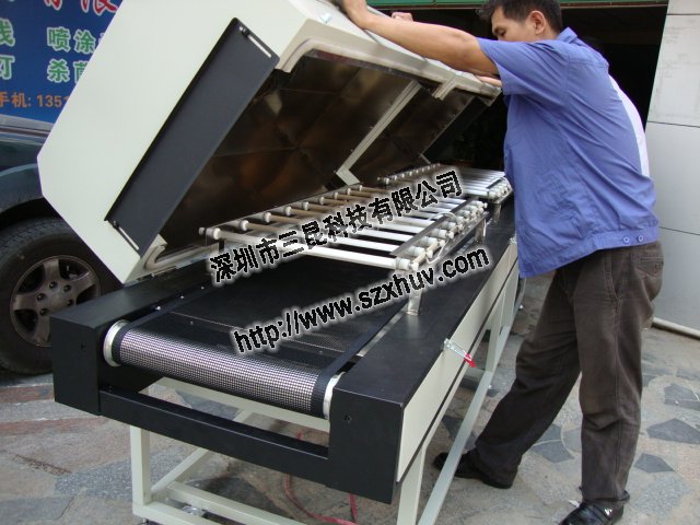 UV爐有手提式的、抽屜式的、隧道式的,只有隧道式的有傳送帶,是UV爐的一種,具體還要看UV燈的W數,如果UV燈超過3KW基本上就是隧道式的了。其他形式的扇熱打不到要求。